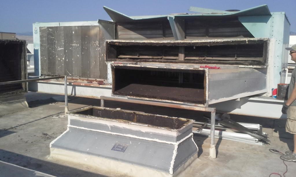 The mall in question is having a painting company coming out to paint the ductwork with a special heavy epoxy based paint to water seal, weatherproof, rust protect, and at the same time, the mall sets along side a freeway and it is a beautiful sight for an HVAC guy, but can be an eyesore for people driving by.