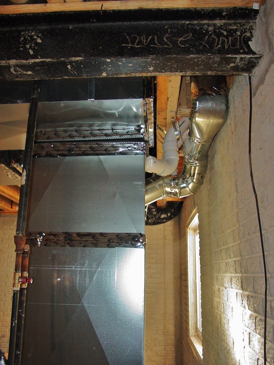 In order to resolve these issues two take-offs were installed between a plenum and cold air return duct and connected to the wall stacks before cold air return duct was mounted.